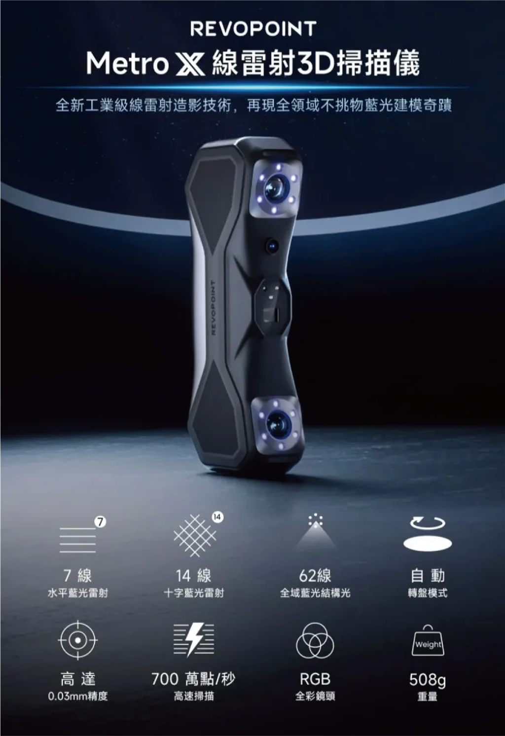 工作效率提升,精準度也提升!MetroX 單幀0.03mm的高清精度捕捉,3D工業級造影輕鬆生成專業級高清掃描圖像。