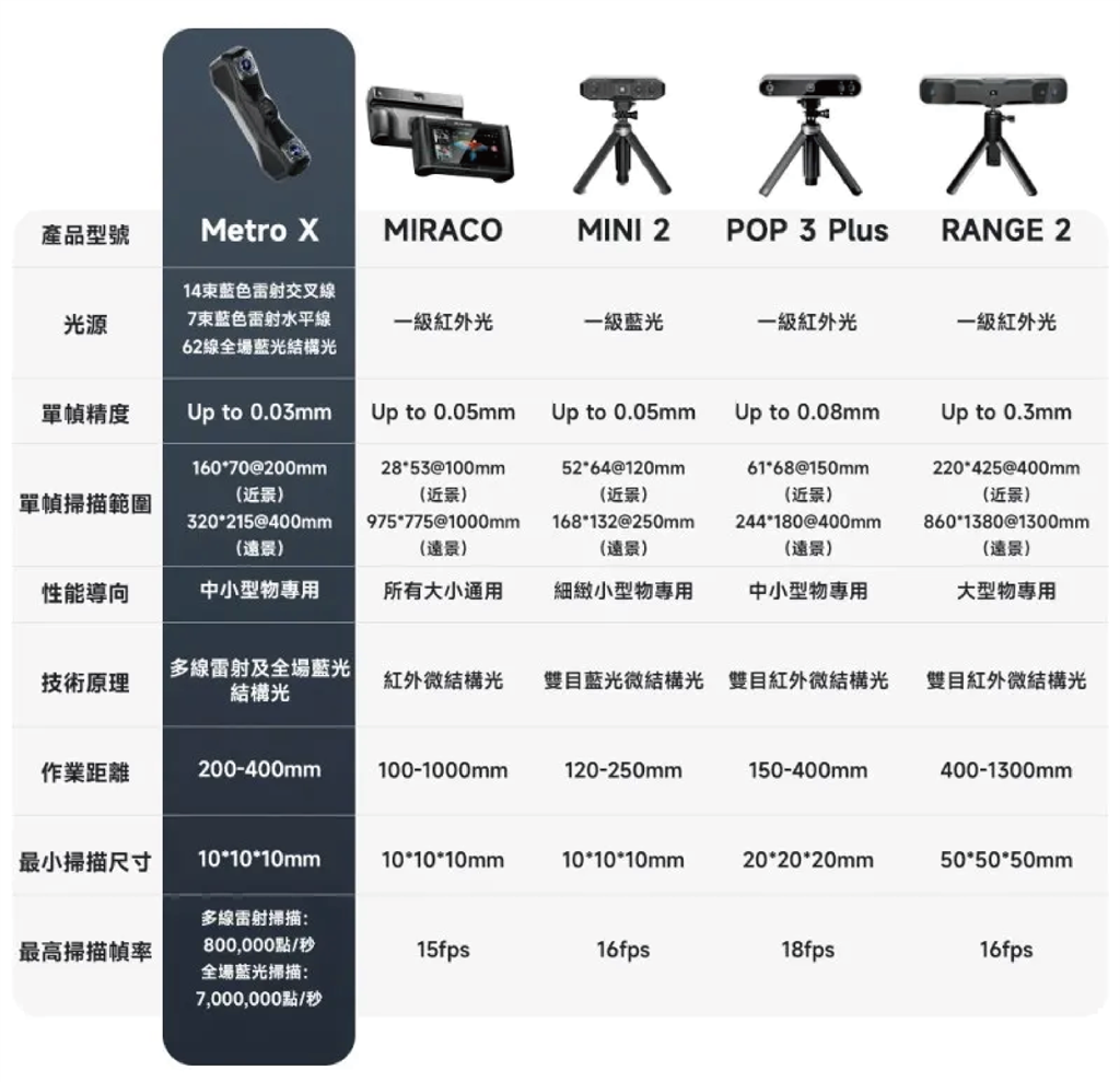 掃描體積 最小10 x 10 x 10 mm,最大可達1 x 1 x 1 m;不只專精大範圍,小區塊也能精準完成任務。