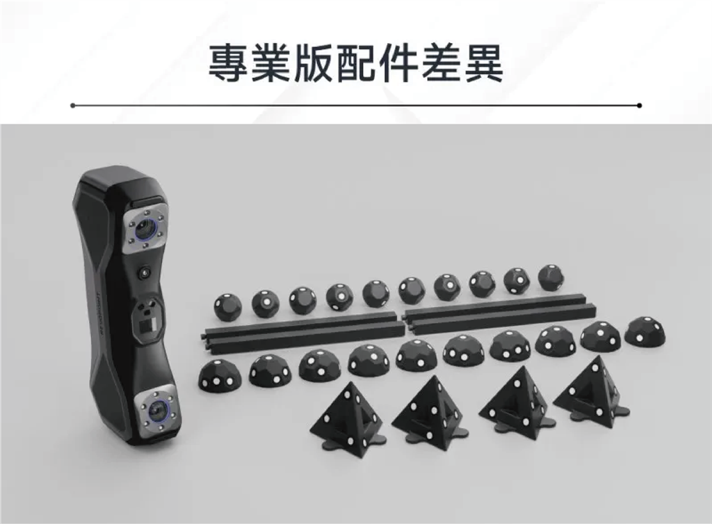 專業版套件內包含磁吸半圓標點x10、磁吸三角標點x4、磁吸圓體標點x10、輔助標點棒x4,及輔助貼點x500。
