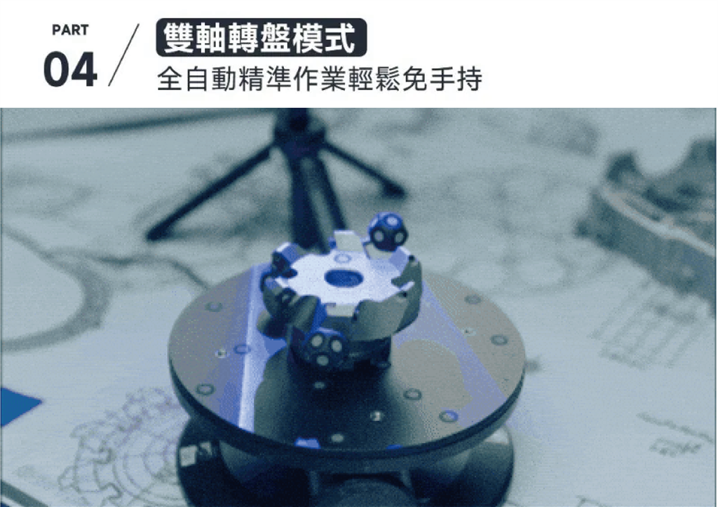 在解放雙手的狀態下,無論是手辦模型、迷你螺絲、袖珍雕刻,皆能透過雙軸轉盤簡單上手建模!