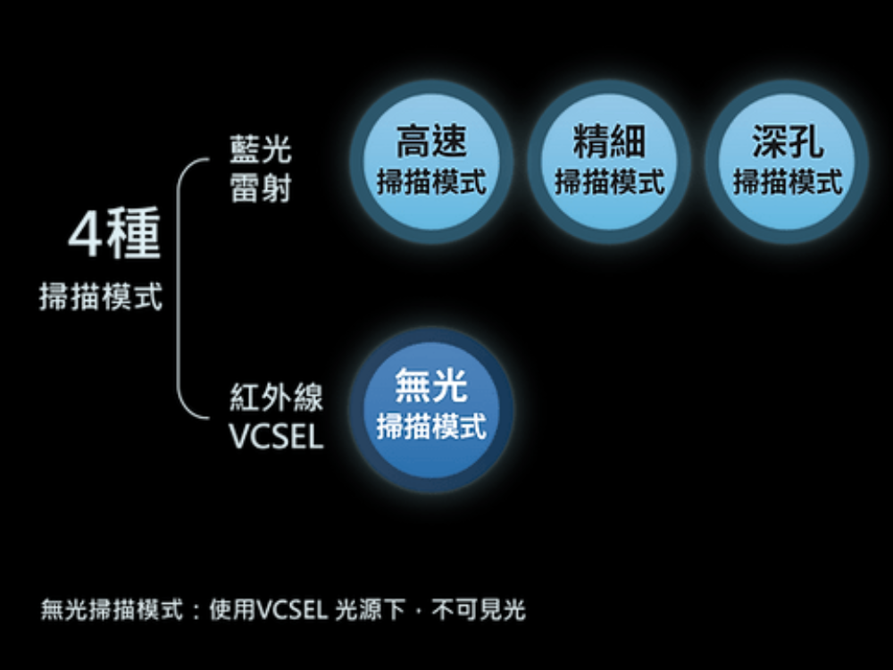 使用雷射+VCSEL光源,省去黏貼定位點時間