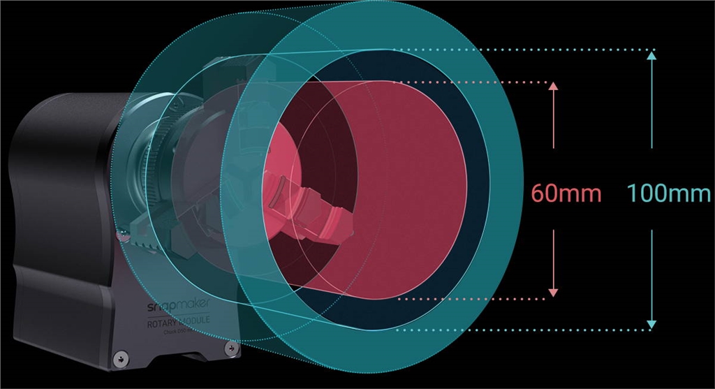 The Snapmaker 2.0 A350T/Artisan/Ray Rotary Module adds a 4th axis to your Snapmaker A350 3-in-1 3D Printer, making it an extremely mighty desktop CNC laser engraver/miller; Can be processed wood, tooling, plastic, bamboo, leather, fabric and opaque acrylic, even hollow objects can be carved.