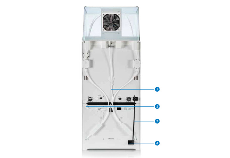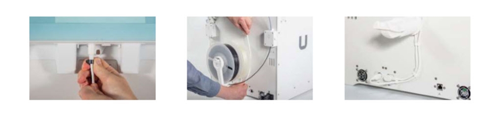 11.將濾淨管家(Air Manager)電線放置線軸支架的右側,並將它插入Ultimaker S5背面的UMB OUT的接孔。