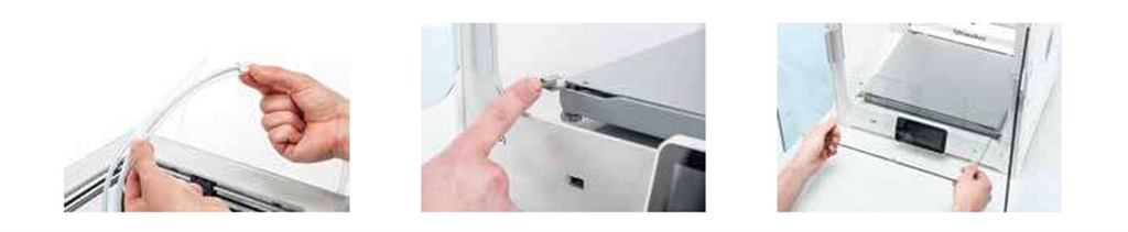 6.將玻璃板放置入工作平臺中,並關閉玻璃門。