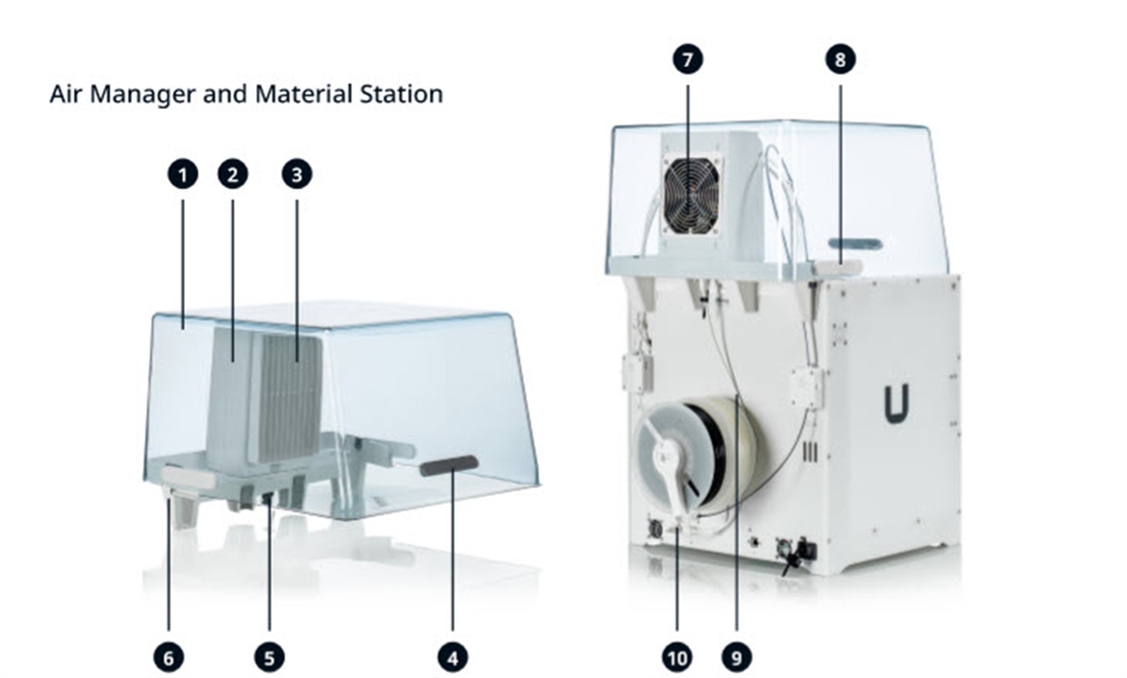 智能進料站(Material Station)建議保存溫度為15-32°C(59 – 90°C),使用時請將設備放置在陰涼處避免陽光直接照射,進料站背面至少要有10公分的空間以確保空氣流通。