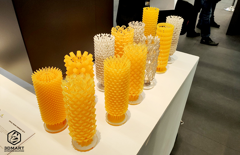 技術而言,列印空間排的愈滿愈節省成本與時間;但以往這樣的物件是由工程師進行最佳排列組合,在新的自動軟體中由電腦運算自動排好最省空間的作法,不僅現場展出成功地排列樣品,且速度比以往快30倍!