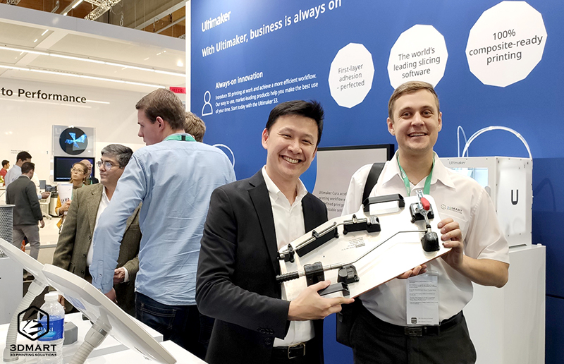 人員手上拿的就是近期新的工業應用案例,展場上也可見許多材料製造商直接使用