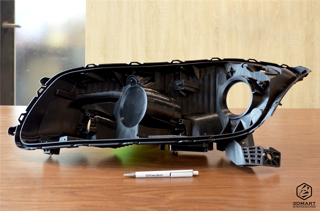 成品列印分享又來囉!經過上次大尺寸1:1汽車煞車卡鉗的示範後,我們受到客戶委託製作1:1汽車頭燈座打樣;這次使用 Ultimaker S5 拆成兩個部件拼裝,終於順利完成囉!