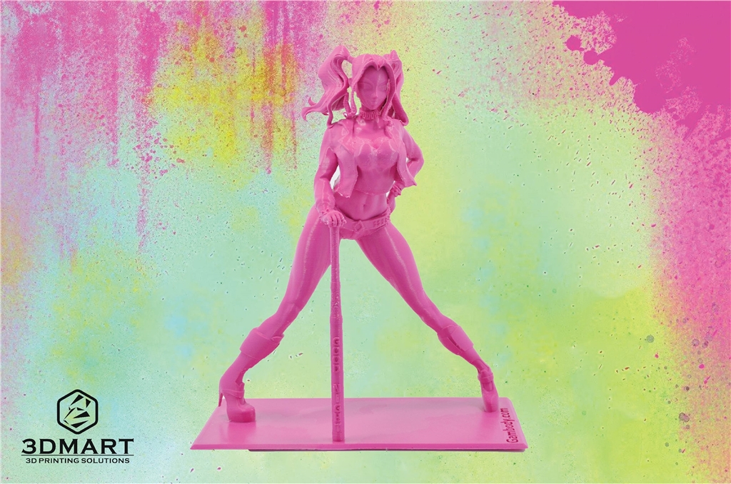 【3D列印快訊】辣翻天的小丑女駕到! 最近三帝瑪又3D列印了一個新的玩具公仔,使用超級少女的粉紅色PLA線材搭配水溶性PVA線材, 來呈現更完整的模型細節,這次登場亮相的是自殺突擊隊中辣翻天的小丑女。 想必看過電影的人應該對這個角色的印象極為深刻吧,瘋狂的行徑配上火辣的身材讓你想不注意他都難, 就讓我們一起來瞧瞧3D列印的小丑女模型吧! 先使用Ultimaker3 3d列印機列印,時間須約3天,層厚0.1mm 列印完成時,因為有PVA線材支撐的關係,還看不太出實際的造型,一切要等取出模型泡水後才能看到完整的樣貌。 將模型泡水約一天的時間後,就能看到小丑女的廬山真面目啦! 前凸後翹的好身材,小編在拍照時差點噴鼻血,先來看看它的正面照 特別合成電影海報背景,看起來真的超有feel的呀~~~ 背面照當然也不能放過,蜜桃翹臀超級吸睛的阿阿 (忍不住癡漢模式啟動),-頭髮的飄逸感也都有列印出來。 若你也對小丑女模型感興趣,歡迎自行付費下載來列印看看唷! 載點在此 請取用 https://www.gambody.com/3d-models/harley-quinn-3d-model