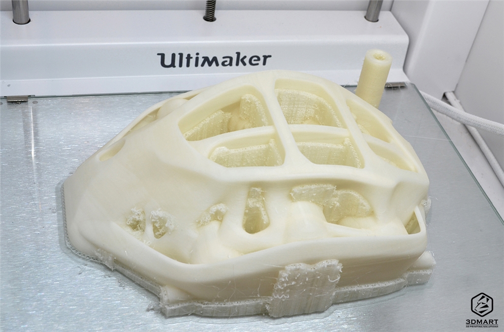 現在就來為大家揭開實際情況囉!Ultimaker S5 大尺寸列印的好處之一就是直接列印PVA支撐材及本體,在一次列印中就能同時完成、省去不少時間,列印本體耗時約四天。