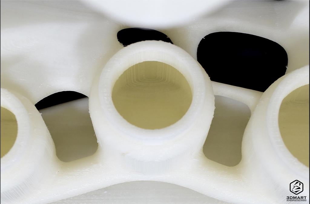 特別拍攝近照讓大家可以審視細節的效果,可以看到除了些許3D列印的紋理之外,孔洞部分都能印的相當完整、形狀精確。