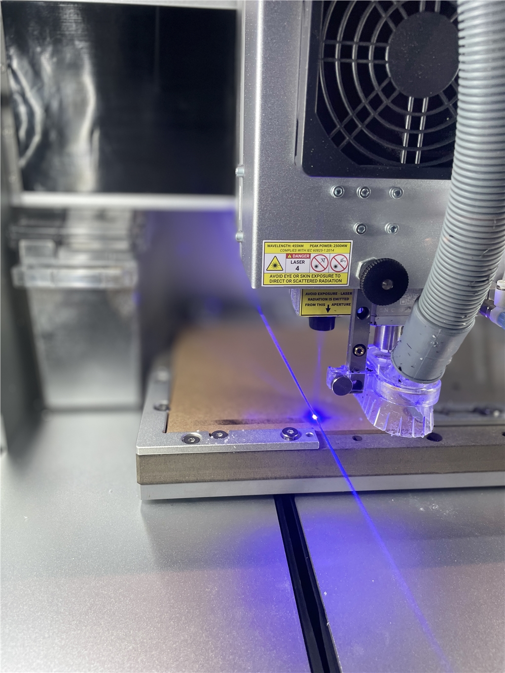 雷射雕刻是Carvera中的輔助功能,我們選擇了一臺2.5W的雷射主要用於材料雕刻。