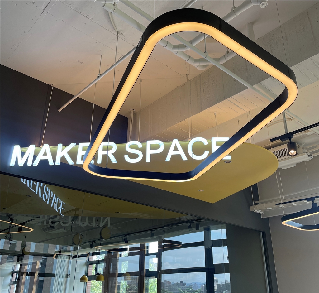 在MakerSpace(創客空間)中,涵蓋了UX/UI Designer(使用者介面設計師), 資訊工程, 社會學, 產品設計不同師資帶領學生將將腦中的雛型「概念視覺化」、「製圖」、「製作樣品」,直到「最終完成成品」。