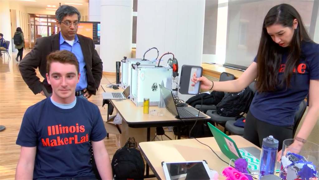 伊利諾伊州創(chuàng)客實(shí)驗(yàn)室的學(xué)生在試用3D掃描器