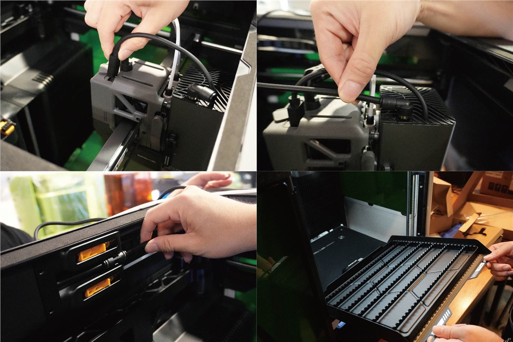 氣泵軟管連接到 H2D 腔體後部兩個導絲接頭之間的接頭上,需要卸下安全螺絲才能使氣泵運作。