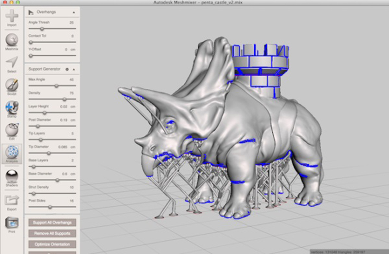 Autodesk Meshmixer是專門為3D列印工程設計的軟體,且完全免費!使用者不但可以在軟體中新增支撐結構,預覽在工作平臺上的定位,還能輕鬆拼接、合併3D模型,齊全的功能有如3D建模中的Adobe Photoshop,具有曲面、網格、自動對齊等功能,對於細雕、編輯、重整、修復模型外觀都非常適合!(點我下載)