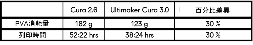 【3D列印快訊】更快更有效率的Ultimaker Cura 3D列印 在Ultimaker,我們一直在提升我們的軟體,以創造出最好的3D列印體驗。 最新版本的Ultimaker Cura增加了新的切片功能和新的外掛,您是否知道與以前的版本相比,它還可以減少列印 時間和材料使用量? 與以前的版本相比,Ultimaker Cura的最新版本可以將可溶解的支撐材料列印速度提高30%,並且對同一3D列印 模型使用的支撐材料減少了30%。 在Ultimaker Cura 3.0中使用建議(預設)模式,相同模型的PVA消耗量從182 g減少至123 g,節省了大約30%的材料。 若1克PVA材料的成本為0.13美元,則省了大約7美元 建議(預設)模式包括用在準備每個模型的所有必要的切片設定 建議(預設)模式 - 在同個地方快速設置 建議(預設)模式通過含有最常用的設定來簡化您的3D列印工作流程,以便快速簡便地進行3D列印準備。 如果您是經驗豐富的用戶,則可以選擇在自定義模式下自行控制,更改為更高級的切片設定。 逐漸支撐- 相同的支撐,更快速的列印 逐漸支持列印時底部有較低的支撐密度,並將支撐材料放置在靠近需要的區域。 逐漸支撐也會自動調整支撐填充層的厚度,使支撐體的列印層厚增加一倍,進一步縮短列印的時間。 逐漸支撐在推薦模式下會啟用。 材料配置檔案 - 由專家開發 由我們的材料工程師團隊開發,材料配置檔案包含每個Ultimaker材料的預設配置設定,以確保高質量,可靠的結果。 通過使用材料配置檔案,新手和有經驗的用戶都可以獲得相同的結果。 支撐材料少,溶解時間快 高效地使用可溶解的支撐材料可顯著減少溶解時間,因此您可以比以往更快地打印照片。 減少列印時間,降低材料成本 所有這些功能都可以在最新版本的Ultimaker Cura中找到。立即下載並發現更多好處。 原文連結:https://ultimaker.com/en/blog/52199-faster-more-efficient-prints-with-ultimaker-cura