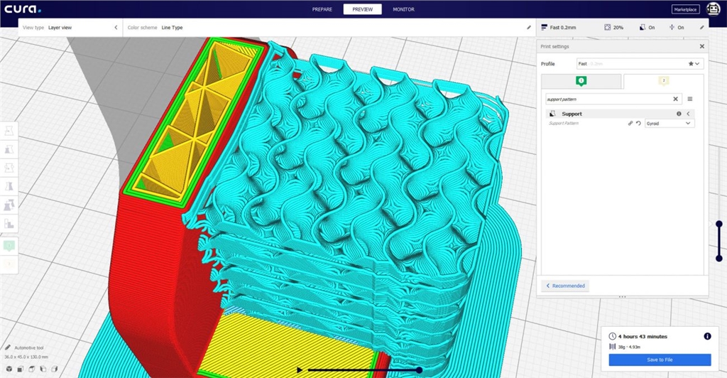 先前由Smartavionics開發(fā)的螺旋形支撐是方便水溶性PVA滲透的設(shè)計,由於圖案相互連結(jié)又具有孔洞,它會幫助加快融解速度。在新版Cura 4.1的改善版本中,若使用Ultimaker Breakway或其他非水溶性的支撐材料,在拔除時會更容易抓握。