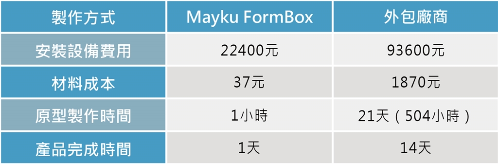 FormBox真空成型材料片可以重複使用,前置設計流程通過客戶那關後,查理只要重複進型填充模具的動作,一個人也能快速、穩(wěn)定的完成系列小量生產(chǎn);不僅如此,完成產(chǎn)品製作後,還能用FormBox來生產(chǎn)泡殼包裝,產(chǎn)品開發(fā)一機包辦!