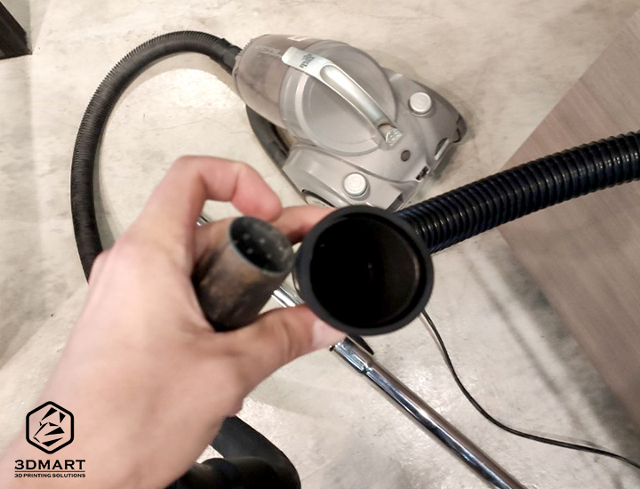 接下來就是串接吸塵器的部分了,首先我們隨便借了一臺小型吸塵器,將吸塵器前端的吸頭拆除。拿出剛才的黑色連接管,一端接上Mayku FormBox後方的圓形插孔中,橡皮塞塞入的時候應該會感覺到一點阻力,完全塞緊可以確保完美的真空成型效果。