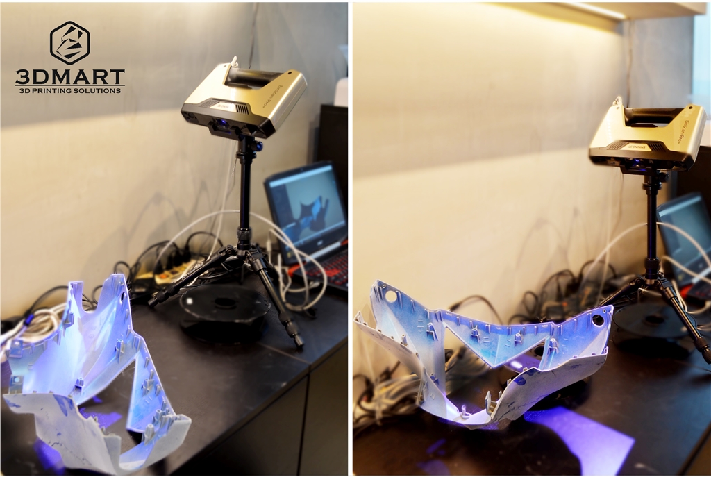 【3D掃描】機(jī)車(chē)殼也能掃?! 畫(huà)圖懶人的救星 大家還記得在之前文章中我們有帶大家初步了解3D掃描器的操作過(guò)程,以及測(cè)試掃描小型物件與人物頭像嗎? 想不到也沒(méi)關(guān)係 就一起回去複習(xí)一下文章吧! 這次要向各位展示使用3D掃描器來(lái)掃大型物件,我們同樣使用Shining 3D推出的EinScan 3D掃描器, 使用跟附近機(jī)車(chē)行要來(lái)的機(jī)車(chē)前方向盤(pán)車(chē)殼,造型如同酷炫的面具一般,也是十分適合3d掃描的物件唷! 先來(lái)看看我們要掃描的機(jī)車(chē)殼吧! 是十分顯眼的寶藍(lán)色帥氣造型~ 第一個(gè)動(dòng)作是先將物件噴粉,跟女生出門(mén)要化妝(上粉)才會(huì)被別人注意到一樣,噴粉可以讓掃描的過(guò)程更加順利, 幫助掃描器更快速的掌握物體的形狀。(注意:但並不是所有物件都需要噴粉,物件會(huì)反光或顏色為黑的比較需要噴粉 ,其他物件可以先掃描後再行判斷) 將掃描器對(duì)準(zhǔn)車(chē)殼正面,可使用腳架架高掃描器讓掃描過(guò)程更輕鬆,記得要調(diào)整車(chē)殼的角度讓掃描的檔案更加完整 可以看到掃描器本身的自動(dòng)校正技術(shù)十分優(yōu)秀,還不到一分鐘正面的造型,就幾乎能夠完整呈現(xiàn)出機(jī)車(chē)殼帥氣流線(xiàn) 的造型。 前面的車(chē)殼掃描完成後,再轉(zhuǎn)向背面的部分繼續(xù),一樣是要先進(jìn)行噴粉的動(dòng)作 後面的細(xì)節(jié)部分比較多,因此在掃描時(shí)需要比前面多一些時(shí)間,但在細(xì)節(jié)處理的部分都能夠非常細(xì)緻的呈現(xiàn)出來(lái), 掃描完成後一樣需要進(jìn)到3d軟體中進(jìn)行一些細(xì)部的調(diào)整,這樣在之後要列印的時(shí)候才會(huì)有更好的品質(zhì)。 最後再經(jīng)由工程師細(xì)部調(diào)整後最後的3D掃描圖檔 之後我們也會(huì)再陸續(xù)公布用這個(gè)掃描好的3D檔案列印的縮小版機(jī)車(chē)殼的文章 我們會(huì)陸續(xù)公布更多關(guān)於掃描相關(guān)的文章,歡迎感興趣的朋友們繼續(xù)關(guān)注我們的最新消息 這次特別感謝三帝瑪附近的三陽(yáng)機(jī)車(chē)所熱情贊助的 帥氣寶藍(lán)色方向盤(pán)機(jī)車(chē)殼 盡請(qǐng)大家期待我們之後 3D列印機(jī)車(chē)殼的誕生!