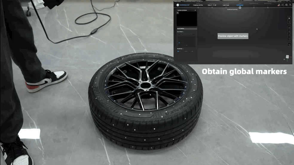 在掃描點雲之前,我們可以先掃描全局標記,這樣算法就能優化精度,獲得更精確的數據,最終提高體積精度。