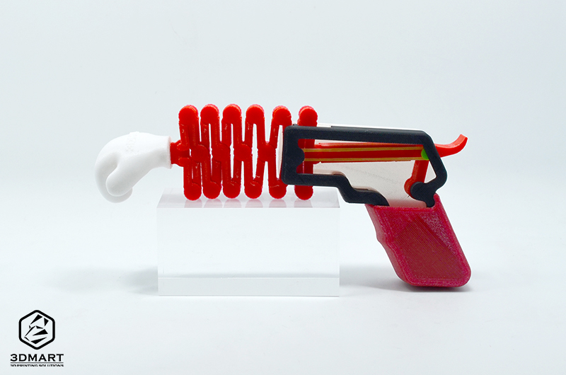 【3D列印應用】六種線材大團圓!複合材質拳擊槍! 三帝瑪樂於為各位嘗試各項材料及3D列印實測,一般的樣品卡太單調又無法看出韌性和強度等功能,因此我們製作了複合材質拳擊槍!各位小時候大概都看過這個玩具,別看這拳擊槍小小一把,它可是結合了六種材質!每種材料都有各自適合的功能,另外,我們也在結構設計中空觀景窗,讓大家可以清楚看到拳擊槍有趣的運作方式: 主要的伸縮柵為Tough PLA,堅固性與ABS相似、不易脆化,適合用於功能性零件;組合式槍柄的部分為尼龍與ABS,這兩種材料除了堅固度以外,尼龍更具有彈性與韌性,因此足以承受支點的受力。槍柄套筒的部分則是具有伸縮彈性的TPU,能更好的適應形狀變化;綠色的固定器栓則使用CPE,具有耐溫性、機械強度,能供物件和機械零件使用的特性,拳頭最常受到外力撞擊,因此選用高強度PC進行3D列印。 本次皆使用Ultimaker 的原廠線材為主,通常包含不同材質要考慮到不同的收縮率,但由於Ultimaker列印的尺寸精確,切片軟體Cura中也有預設參數,因此這些零件的結合性依然非常好。其中當然也少不了Ultimaker雙噴頭系統帶來的好處,讓我們能活用PVA水溶性支撐材料,放進水裡就能獲得精準尺寸和漂亮表面。 這些就是3D列印完成後的七個零件,現在就按照圖解方式進行組裝: 首先,將橡皮筋和綠色的固定栓、伸縮柵放入把手的卡榫中,接著將另一邊完全對稱的橡皮筋和固定栓一併放上。 蓋上黑色的ABS槍柄,確定每個卡榫都準確合上,最後再套入拳頭和槍套就完成囉! 對3D列印技術有興趣?三帝瑪春節過後即將開設3D列印講堂,現場也能看到這支拳擊槍喔!新春帶你印起來,線上報名快點我!座位有限、額滿為止! 我們還會持續和大家分享與3D列印有關的各項新資訊及實測,所有最新消息都會公布於我們的粉絲專頁! 追蹤粉絲頁、消息不漏接:https://www.facebook.com/www.88778853.com/