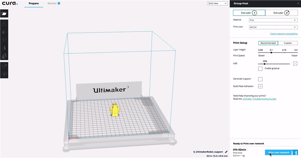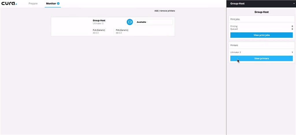 4. 將介面切換為「Monitor」監控設定,在此設定Ultimaker 3D列印機的作業排程,開始3D列印時可以隨時查看製作狀況。