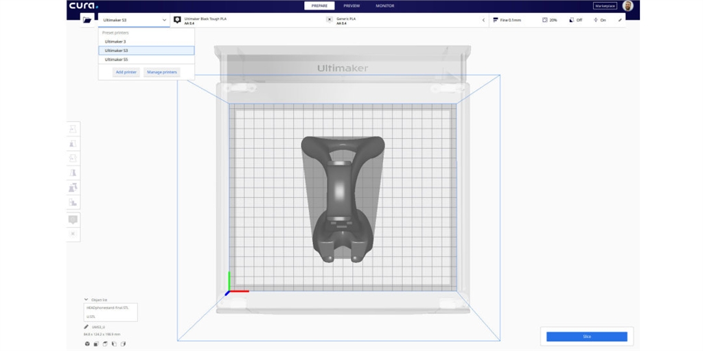 新版本Cura 4.3中已經加入最新上市的S系列 3D列印機參數設定、包含Ultimaker S3 3D列印機及Ultimaker S5 Pro Bundle的一體化完整系統,並完整串接Ultimaker Cura、Connect和Ultimaker Cloud雲端操控,讓你的3D列印作業更方便。