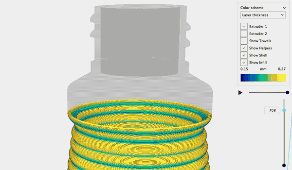 【3D列印軟體】用Ultimaker Cura的自適應(yīng)層功能快速列印 正如多數(shù)人知道的那樣,Ultimaker 3D列印機(jī)使用融合沉積建模(或FDM)來(lái)製造物理物件。 這個(gè)過(guò)程是通過(guò)將一個(gè)數(shù)位模型切片成一堆水平層,借助Ultimaker Cura等切片軟體。 讓圖層依次列印在一起,形成一個(gè)物理物件。 質(zhì)量與速度 多數(shù)切片軟體將每個(gè)圖層間分配一個(gè)不變的間距(稱為圖層高度)。 非常精細(xì)的圖層高度會(huì)產(chǎn)生高解析度模型,但每個(gè)額外圖層都會(huì)增加列印過(guò)程的時(shí)間。較厚的圖層高度會(huì)列印得更 快 - 因?yàn)榱杏〉膱D層較少 - 但完成後的模型細(xì)節(jié)程度會(huì)降低。這些情況讓用戶處?kù)侗仨氝x擇的位置,以優(yōu)化列印的 時(shí)間或列印品質(zhì)。 如果你能擁有兩全其美的世界 – 讓你的列印圖層高度能自己適應(yīng)物體的形狀呢? 自適應(yīng)層,自Ultimaker Cura 3.2以來(lái)可用的新切片特色使這些成為可能。 在產(chǎn)品開(kāi)發(fā)中應(yīng)用自適應(yīng)層 這在實(shí)踐中意味著什麼? Poly-Tainer Inc.是一家塑膠瓶製造商和裝飾商,生產(chǎn)使用於健康和美容市 場(chǎng)產(chǎn)品的容器。為加快3D CAD設(shè)計(jì)實(shí)施流程,他們投資兩臺(tái)用於內(nèi)部原型設(shè)計(jì)的Ultimaker 3 Extended列印機(jī)。 藉由3D列印技術(shù),Poly-Tainer能夠與他們的客戶(通常是Target和Walmart等主要零售商)共享準(zhǔn)確的概念模型, 並在投入高達(dá)100,000美元大量生產(chǎn)模具之前消除設(shè)計(jì)中的不確定性。 在Ultimaker Cura中使用「快速」切片檔案的瓶子原型。 層厚持續(xù)維持在0.2mm(200micron)。 使用自適應(yīng)層切片的瓶子原型。 列印時(shí)間減少了10%,並且對(duì)需要它的區(qū)域給予更多細(xì)節(jié)。 最終產(chǎn)品在貨架上的外觀是販?zhǔn)圻^(guò)程的重要考慮因素。使用自適應(yīng)圖層,Poly-Tainer可以在比具有不變圖層高度的 模型在更少的時(shí)間內(nèi)列印出具改進(jìn)外觀和品質(zhì)的細(xì)節(jié)概念模型。 模型的角度部分每層都具有更精細(xì)的步驟,重要的設(shè)計(jì)元素(例如瓶子頸部的線跡)具更好的細(xì)節(jié)。 使用Ultimaker Cura圖層視圖中包含的層厚顏色方案,可以顯示層厚的變化。 在這個(gè)例子中,較厚層是黃色的, 較精細(xì)層是藍(lán)色的。 Ultimaker 3的雙重?cái)D出功能可以使用可溶解的PVA支撐材料,有助於實(shí)現(xiàn)設(shè)計(jì)特徵,例如「底部提高」,這是製造 瓶子中的重要設(shè)計(jì)元素。 與恆定層高度相比,使用自適應(yīng)層和可溶解PVA支撐能更快速的創(chuàng)造此概念模型,而且具 有定義明確的裝飾斜面,增加的細(xì)節(jié)助也幫助裝飾瓶子過(guò)程時(shí)提供的精準(zhǔn)的多色網(wǎng)狀列印。 底部提高是保健和美容產(chǎn)品容器的理想特徵。 此功能的水平橫截面顯示藍(lán)色的支撐結(jié)構(gòu)。 列印完成後, 支撐材料可以更容易的溶解在自來(lái)水中。 精準(zhǔn)的3D列印概念模型使Poly-Tainer能夠在生產(chǎn)工具創(chuàng)造第一個(gè)產(chǎn)品之前訂購(gòu)訂製的裝飾工具。 這讓新設(shè)計(jì)推向市 場(chǎng)的時(shí)間節(jié)省了約4-6星期的時(shí)間。 自適應(yīng)層如何優(yōu)化速度和細(xì)節(jié) Ultimaker Cura的自適應(yīng)圖層功能可分析模型外壁的傾斜角度。 切片引擎會(huì)優(yōu)化每個(gè)部分的層厚。 曲線以更精細(xì) 的圖層分析率列印,而垂直平坦區(qū)域則列印更厚的圖層,縮短列印時(shí)間。 計(jì)算方式是自動(dòng)的,用戶可以指定的三個(gè) 參數(shù):最大變化量,變化步長(zhǎng)和層閾值。 預(yù)設(shè)參數(shù)通常就足以提供良好的結(jié)果,但可以進(jìn)行測(cè)試以進(jìn)一步優(yōu)化用戶 特定模型的列印時(shí)間,同時(shí)仍保留精細(xì)細(xì)節(jié)。 免費(fèi)可使用的切片軟體 Ultimaker Cura完全免費(fèi)提供給用戶。 您可以通過(guò)將此樣本.STL檔案載入到Ultimaker Cura 3.2或更高版本來(lái)嘗試 此功能。通過(guò)切換到自定義模式並在搜尋欄位中搜索「自適應(yīng)圖層」,從Ultimaker Cura的界面中訪問(wèn)自適應(yīng)圖層 的設(shè)置。我們一直喜歡聽(tīng)Ultimaker如何幫助人們簡(jiǎn)化業(yè)務(wù)流程。 你認(rèn)為哪些功能對(duì)你的工作流程最重要? 歡迎在我們的3D列印專家社群中分享您的想法。 特別感謝Poly-Tainer Inc.的Frank Cowles。 原文連結(jié):https://ultimaker.com/en/blog/52520-print-detailed-objects-faster-using-adaptive-layers-in-ultimaker-cura