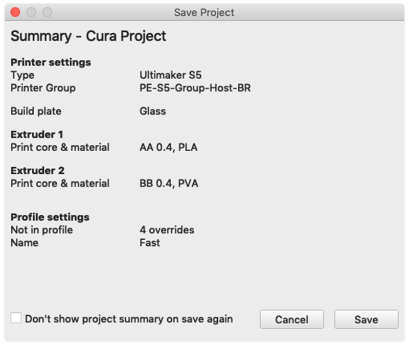 (儲存檔案後,Ultimaker Cura會顯示所有作業詳細內容。)