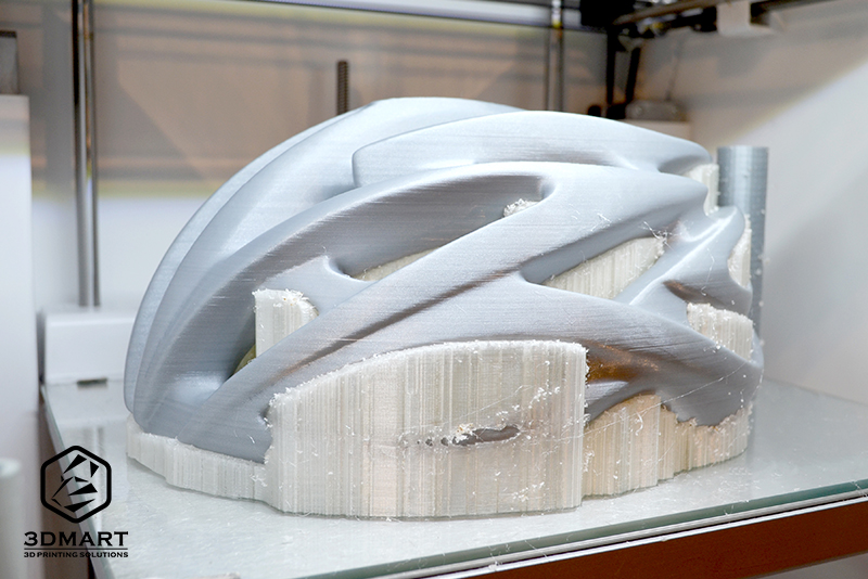 簡(jiǎn)單以水溶解後,可以看到安全帽光滑的外觀、線材層層緊密堆疊,整體樣品原型的精度非常高而紮實(shí)!