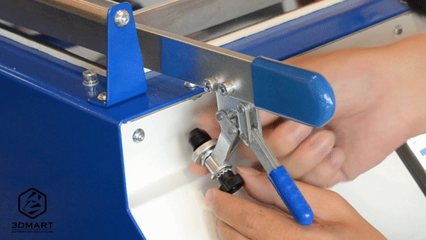 後,依據材料片厚度旋轉調整螺絲鬆緊,就能確保抽真空過程中,材料片邊緣可以正確夾緊。