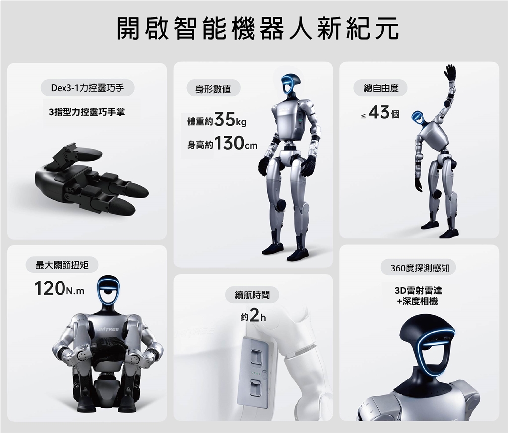 7(可加選力控3指靈巧手Dex3-1)+2(可加選2個手腕自由度) |