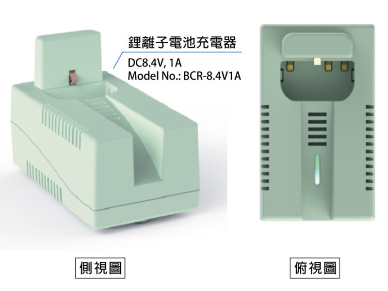 炸菌精靈XTB-360森氧機搭配1顆「鋰離子電池」、1個「鋰離子電池充電器」,兩個半小時內即可將電量充滿。