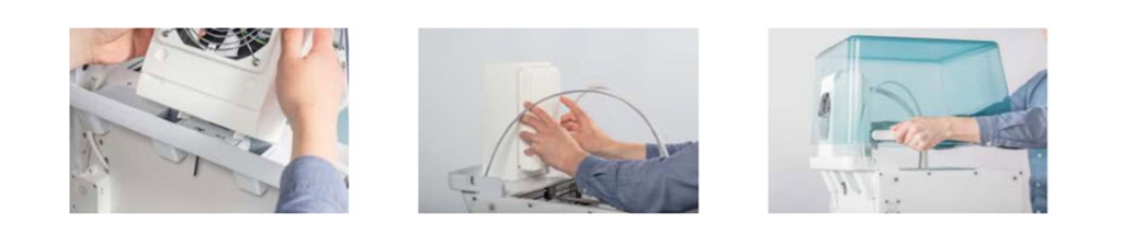 6. 從3D列印機的正面將蓋子蓋在過濾器外殼上。